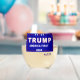 Blue and red original Trump America First 2024 banner decorates this 16oz stemless wine glass with blue & red shadow typography name. Easily change the name to make it yours using the Template provided. This makes a perfect keepsake for family, friends or Watch Party Host. See "About This Product" at side for more information and care.