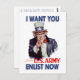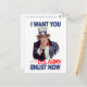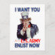 This vintage image features the iconic historical depiction of Uncle Sam. Text from this vintage post card, Circa 1837 reads: "I Want You for the Army - Enlist Now". The flip side of this post card has the same image, however, it is muted so that you are able to write over it or simply collect these postcards and give them as gifts. The original image is used with permission from the Library of Congress. You may not redistribute or copy this restored image without permission from this store.