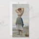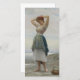 This design features a painting by the Italian artist Eugene de Blaas (1843–1931). It shows a woman collecting pebbles, seashells and stones on a sandy beach in Italy. The woman is wearing a simple dress and she is barefoot as she walks along the sand. She is rearranging her hair. Her posture shows off her simple elegance and beauty. There is a basket of small pebbles beside her bare feet. The original art was painted in 1908.
