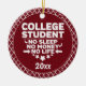 College Student No Sleep Money Life Red Shapes Christmas Tree Ornament. Hang this college student ornament on your Christmas tree during the holidays to remind you of all your struggles and your journey through college. These College Student No Sleep No Money No Life Christmas tree ornaments also make wonderful gifts for college students.