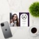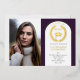 Classy and elegant with the "wow" factor of real gold foil with a dark purple background on front and a dramatic dark purple and gold-toned (not foil) marble look background on back, this college or university graduation announcement features your photo on left and a graduation cap surrounded by a laurel wreath on right in real foil detailing. Your class year and name are also accented in real foil, along with a highlight foil line surrounding the white arched background.