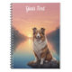 Brown and white Collie sitting by a lake at sunset. Add this image to other products. Add your own text too. Change background colour. Lots of pets in my store.