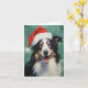 Colourful and joyful Christmas design with a Collie wearing a Santa hat