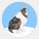 Collie Christmas Reindeer Tri Classic Round Sticker