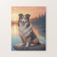 Collie dog, tri colored Standard,, sitting by beautiful lake. Lots of pet and scenery designs in my stores. Add this design to other products. Add text.