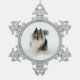 Collie Running Through Snow Snowflake Pewter Christmas Ornament