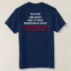 Blue t-shirt with red and white lettering, fully customisable.