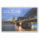 Cologne on the Rhine with Hohenzollern Bridge and Dom in North Rhine-Westphalia and city in Germany panoramic design souvenir. Cologne Cathedral city night design for trip to Hohenzollern Bridge or holiday in Porz and Ehrenfeld. Cologne cityscape with cathedral for Germany vacation.
