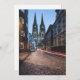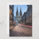 Travel photo of Cologne (Köln) in Germany at night. The photograph shows the Cologne Cathedral and the cobbled stone street "Burgbauer". Photo © Sebastian Worm.