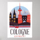 Elegant vintage Cologne Poster featuring the famous Cathedral (Kölner Dom), Hohenzollern Bridge over the Rhine, Cologne, Germany. Unqiue souvenir and gift idea for your family and loved ones.