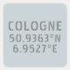 Cologne Germany city latitude and longitude map coordinates in modern urban font on light blue background