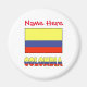 Personalised round magnet features the Colombian Flag with the word COLOMBIA below, in the colours of the flag with a black border. Above is a place for a name so you can add a personalised touch or create a gift for someone special. Makes a cool stocking stuffer. Fun to wear to a Colombian family reunion.