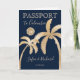 Modern and Elegant Mexico World Map Invitation Wedding Destination, like passport. Hand drawn golden palm trees on the front page, location Cartagena, Colombia