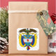 The coat of arms of Colombia contains a shield with numerous symbols. Perched on top of the shield is an Andean Condor holding an olive crown and the condor symbolising freedom. The national motto, Libertad y Orden (Spanish for Liberty and Order), is on a scroll in between the bird and the shield in black font over golden background. The condor is depicted facing front with his wings extended and looking to the right.