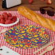 Beautiful colombian flag inspired artwork showing a product an a allover pattern on it.