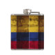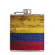 Colombia Flag on Old Wood Grain Hip Flask