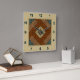 Colonial Pavement Quilt Block Rust & Dark Green Square Wall Clock