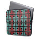 Colonisation laptop sleeves. Colonisation is an abstract and grunge design created by Vexenwraith and consists of red, black, and turquoise lines running vertically and horizontally on a black background.