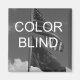 Photo of an American Flag and a Marine Corp Flag on a flag pole, done in greyscale and white lettering with the words Color Blind