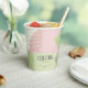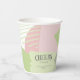 Abstract color blocking in a cheerful color palette of rose pink and spring green provides a striking background for the pieces in this contemporary wedding suite. The wedding paper cup shown here adds the perfect splash of color for your modern spring wedding. Add a personal thank you message, your initials and wedding date using the provided template. Search ID740 to see other color options and additional products with this design.