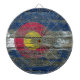This unique design by artist Jeff Bartels features the flag of Colorado on rough wooden boards. The flag is peeling off of the wood which creates an old distressed look. Under the peeled paint there is coarse wood grain visible which further creates the vintage feel. This stylish rustic flag design is a perfect way to show off your Coloradan pride and patriotism