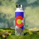 This water bottle is a must-have for any outdoorsy Coloradan! It features a beautiful design that showcases the iconic Colorado flag, complete with mountains and trees.