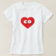 This t-shirt features a vibrant red heart containing the bold, rounded lower case letters co, a playful abbreviation for the state of Colorado, the centennial state.