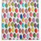 This shower curtain has a mid-century modern design of sets of three leaves in fading shades of retro colors.