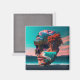 A skull head has been completely colored in an abstract style to bring you into the world of creativity and surreal design, in the style of photo-realistic landscapes, tropical landscapes, futuristic realism, pixelated realism, light crimson and sky-blue, surrealistic dreamscapes