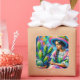 Vibrant colour art featuring a beautiful Mexican woman surrounded by cacti.