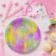 Custom Colorful Abstract Art Paper Plates that feature vibrant hues, of magenta, yellow, pink, and green.