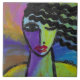 My colorful abstract portrait of a woman is printed on ceramic tile