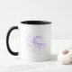 This colorful abstract neon splash coffee mug features a vibrant modern art design on a dark background.
