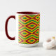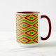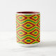 Colorful African Kente pattern in bright yellow, maroon and green.