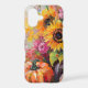 A vibrant, modern abstract painting showcasing a playful arrangement of pumpkins, sunflowers, and other fall foliage. Rich autumn hues like burnt orange, deep reds, pinks and golden yellows blend with soft brushstrokes and bold splashes of color. The abstract style adds a contemporary flair to the traditional fall harvest theme, capturing the warmth and beauty of the season in a lively, artistic composition.