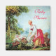 Romantic and joyful painting,mother and child on wheelbarrow with flowers walks in the green garden under the blue sky, re-elaborated from masterpiece of Jean - Honoré Fragonard .