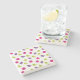 The coasters are gorgeous, a quality feel and heavy weight. They look like a precious archeological find. A rustic stone juxtaposed with a modern floral black and white print. I like the way the print goes slightly imperfect on the cut stone edges giving them a kind-of natural beauty.