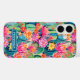 Customize this colorful watercolor iPhone 16 case featuring cacti with beautiful blooms in pinks, oranges, reds and yellows with your name in a modern CAP font in white on teal. It's so modern and trendy!