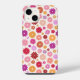 Colorful flower pattern in yellow, orange, pinks, lilac and reds on a cream color background.