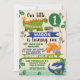 Cute and colorful our little dinosaur boys birthday invitation suitable for a first or second birthday. The design features three dinosaurs, a green balloon and two banners . This first or second birthday invitation is a cute way to invite your little boy's guests to his dinosaur themed birthday party.