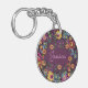 Colorful Busy Floral Pattern Purple Personalised Key Ring
