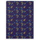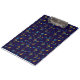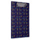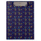Colorful clipboard featuring a dark blue background with a vibrant pattern of abstract yellow, purple, and blue shapes. Shown in front and angled left views.