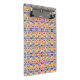Colorful clipboard with a vibrant geometric pattern featuring stars and flowers in orange, blue, and red on both front and back. Bright and lively design.