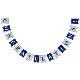 A bright, festive “Congratulations!” banner featuring alternating blue and white flag-style letters arranged in a cheerful curve. Perfect for parties, graduations, milestones, and any celebration that calls for a joyful decorative touch.