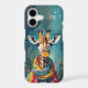 Phone case featuring a colorful painting of a giraffe with scarf. You can add your custom initials (optional, you can also delete the template). Beautiful for an animal lover and also a great gift for Christmas.