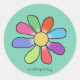Graphic flower with 8 petals all in different colours. Text "a colourful day". Share the joy, initiate good moments! Solid background colour can be customised.