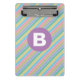 Colorful Diagonal Candy Stripes Purple Monogram Mini Clipboard