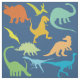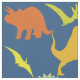 Colorful Dinosaur silhouette pattern. Tyrannosaurus Rex, titanosaurs, Triceratop, raptors, Ankylosaurs, Dino-Birds, Stegosaurus, Apatosaurus, Pteranodon and more in a colorful pattern in blue background, and dinosaurs in green, blue, yellow and orange.