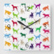 Colorful dogs silhouettes square wall clock