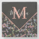 The coasters are gorgeous, a quality feel and heavy weight. They look like a precious archeological find. A rustic stone juxtaposed with a modern floral black and white print. I like the way the print goes slightly imperfect on the cut stone edges giving them a kind-of natural beauty.